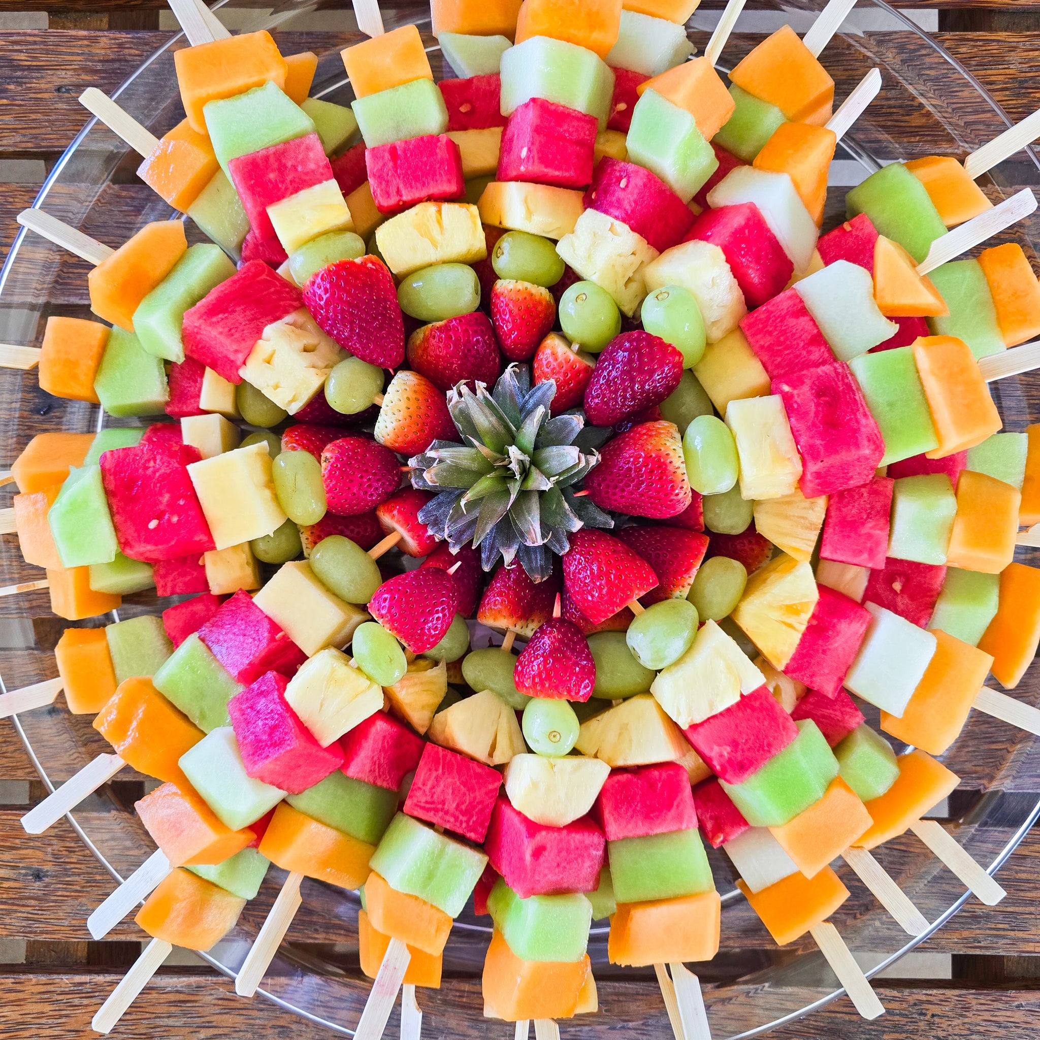 Fruit skewers are perfect for any setup.