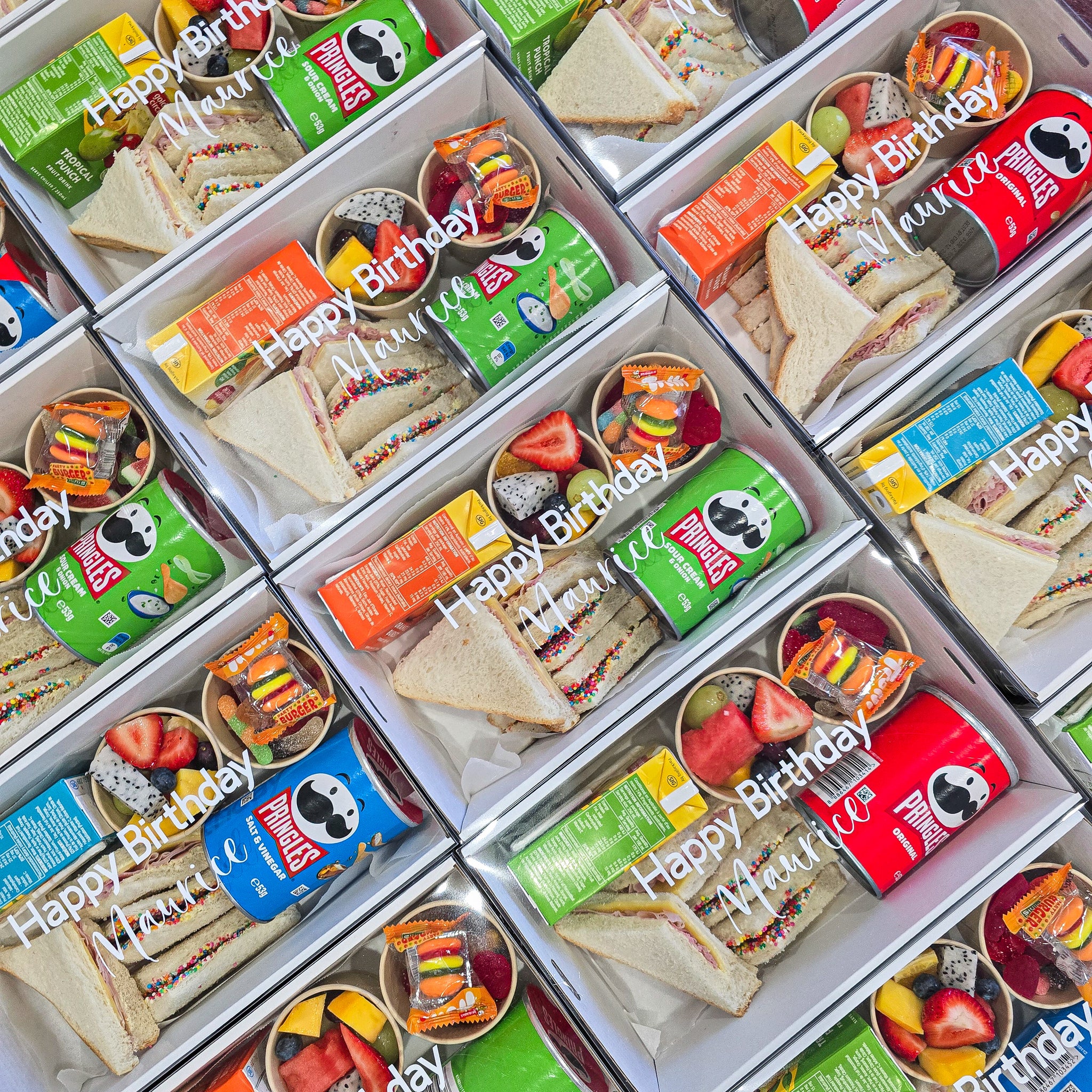 Each box is filled with an assortment of goodies, making it a convenient and hassle-free way to keep children entertained and satisfied during the party. Whether it's a birthday celebration in the park or a gathering at home, our Kids' Treat Boxes are the perfect way to add a little extra fun to the occasion